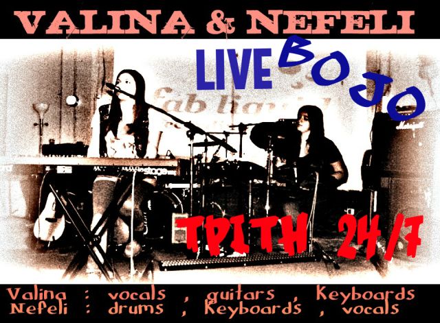Η Βαλίνα και η Νεφέλη παίζουν Rock & Blues. Στo πρόγραμμά τους, θα ακούσετε το δικό τους "δείγμα γραφής", με κομμάτια που τώρα ηχογραφούνται στο studio, καθώς και διασκευές από μεγάλες επιτυχίες από τη δεκαετία του '60 μέχρι και σήμερα.